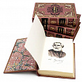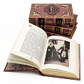 Исторический французский стиль кожаного переплета каждая книга выполнена вручную с использованием лучших сортов переплетной кожи. Уникальное цветное и рельефное тиснение, это полностью ручная работа. Книжный блок отшлифован и тонирован с нанесением цветного орнамента, поставляется в футляре украшенном мраморной бумагой и золотым тиснением.