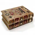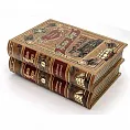 Исторический французский стиль кожаного переплета каждая книга выполнена вручную с использованием лучших сортов переплетной кожи. Уникальное цветное и рельефное тиснение, это полностью ручная работа. Книжный блок отшлифован и тонирован с нанесением цветного орнамента, поставляется в футляре украшенном мраморной бумагой и золотым тиснением.