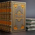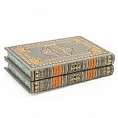 Исторический французский стиль кожаного переплета каждая книга выполнена вручную с использованием лучших сортов переплетной кожи. Уникальное цветное и рельефное тиснение, это полностью ручная работа. Книжный блок отшлифован и тонирован с нанесением цветного орнамента, поставляется в футляре украшенном мраморной бумагой и золотым тиснением.