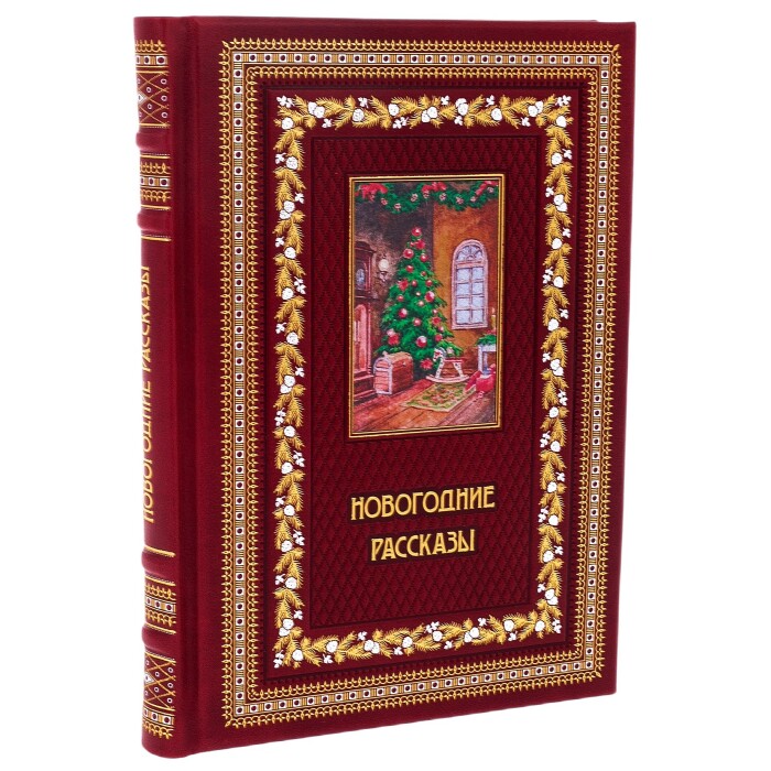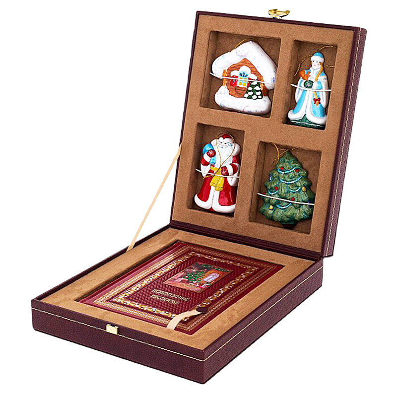 Подарочный набор "Новогодние рассказы" книга в кожаном переплете и 4-е игрушки