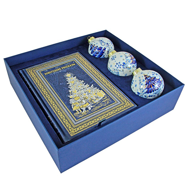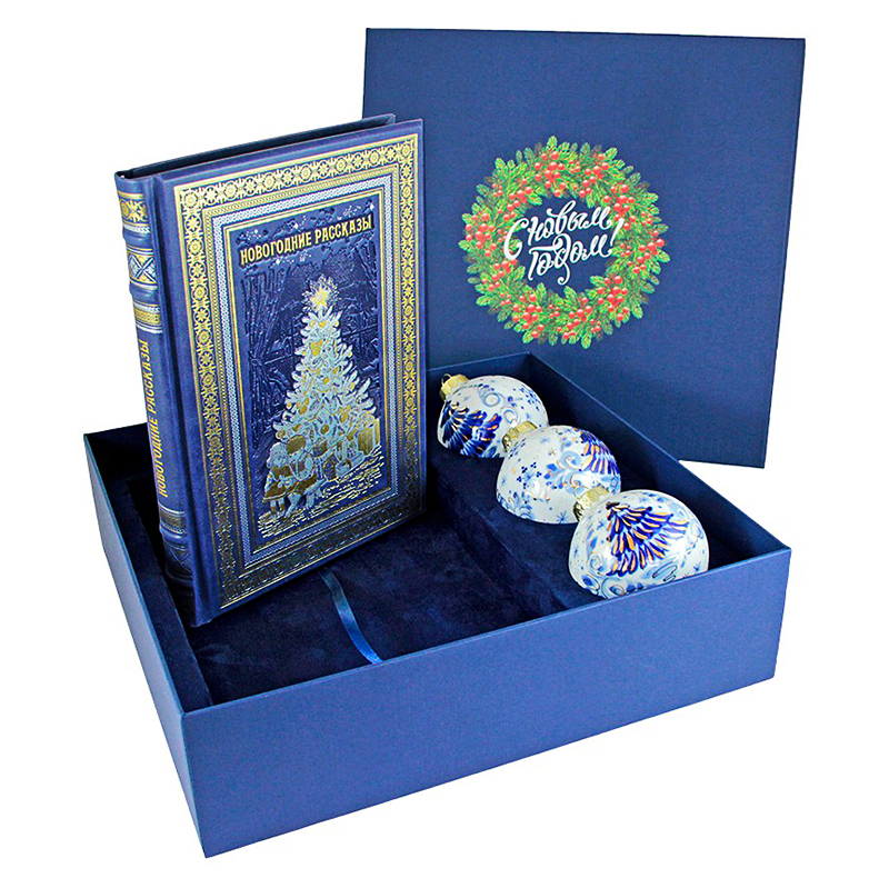 Подарочный набор "С Новым Годом" книга в кожаном переплете и 3 шара