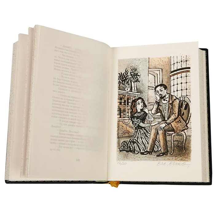 Переплет ручной работы из натуральной кожи (шагрень); цветные иллюстрации; 100 нумерованных экземпляров.