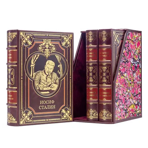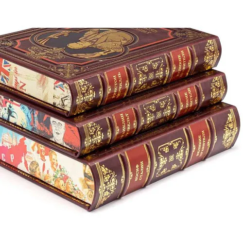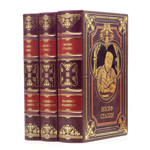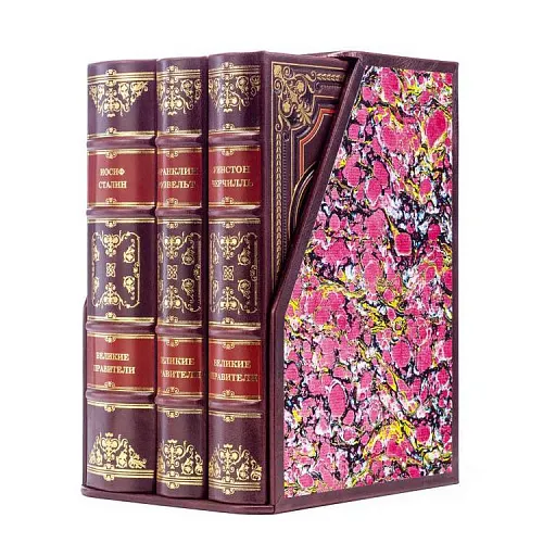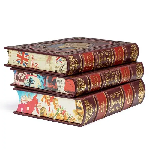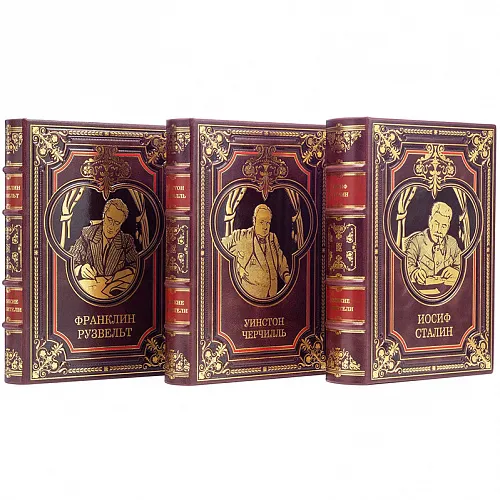 Подарочный трехтомник в коже "Сталин, Рузвельт,Черчилль"