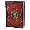 овчина, литье, тиснение ручной работы, черная и красная кожа, выжигание по коже на корешке.