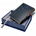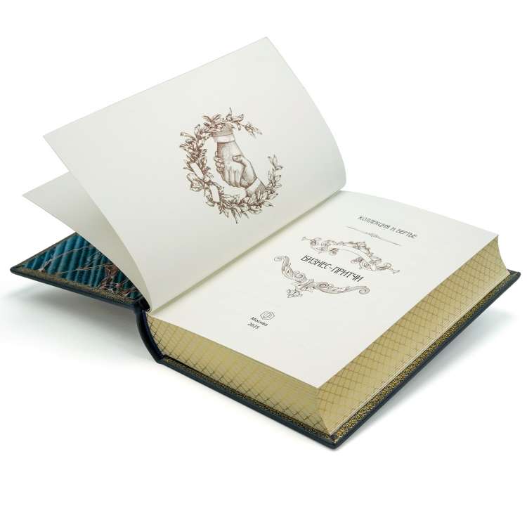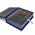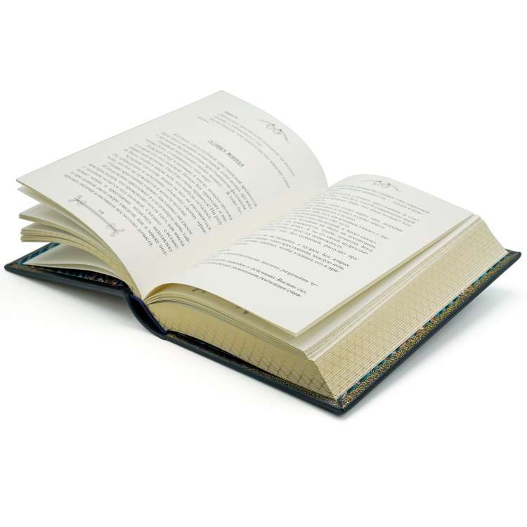 Исторический французский кожаный перелет, тиснение цветное, блинтовое и рельефное. Книги отпечатаны на дизайнерской бумаге Ozon Ivory, книжные блоки сшиты вручную. Обрезы книжного блока с трех сторон отшлифованы вручную и тонированы с нанесением золотого узора, каптал ручного плетения. Книга поставляется в подарочном коробе.