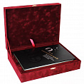 Переплет ручной работы из натуральной кожи (шагрень), тиснение блинтовое и золотой фольгой в 23 карата, бумага CorollaBook (Италия), тресторонний крапленый обрез, каптал и ляссе из натурального шелка, цветные иллюстрации. Тираж 200 номерных экземпляров.