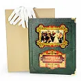 Цельнокожаный переплёт ручной работы, украшен иллюстрированной вставкой из цветного металла. Обложка двухуровневая. Металлические уголки дополняют дизайн и сохраняют книгу при использовании. Текст книги напечатан на мелованной бумаге и дополнен цветными иллюстрациями. Обрез оформлен художественным изображением. Ляссе из шёлковой ленты. Форзац цельный из дизайнерской бумаги.
