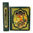Книга представлена в оригинальном подарочном коробе, сделанном из мдф и обтянутым вручную высококачественной натуральной кожей. Цельнокожаный переплёт ручной работы, украшен иллюстрированной вставкой из цветного металла. Обложка двухуровневая. Металлические уголки дополняют дизайн и сохраняют книгу при использовании. Текст книги напечатан на мелованной бумаге и дополнен цветными иллюстрациями. Обрез оформлен художественным изображением. Ляссе из шёлковой ленты. Форзац цельный из дизайнерской бумаги..