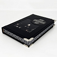 Цельнокожаный переплёт ручной работы, украшен иллюстрированной вставкой из цветного металла. Текст книги напечатан на мелованной бумаге и дополнен чёрно-белыми иллюстрациями. Обрез оформлен в технике "Перо павлина". Ляссе из шёлковой ленты. Форзац цельный из дизайнерской бумаги.