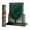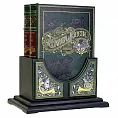 Дизайн прекрасно сочетает в себе золотое и блинтовое тиснение, художественную металлическую вставку, соответствующую тематике издания, а также крашенный в тон переплетного материала обрез. Цельнокожаный переплет ручной работы. Высококачественная бумага, красочные иллюстрации, ляссе.