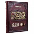Подарочное издание в переплете ручной работы из натуральной кожи с трехсторонним золотым обрезом, в качестве оформления использовано художественное объемное литье с изображением сюжета из сцены охоты.