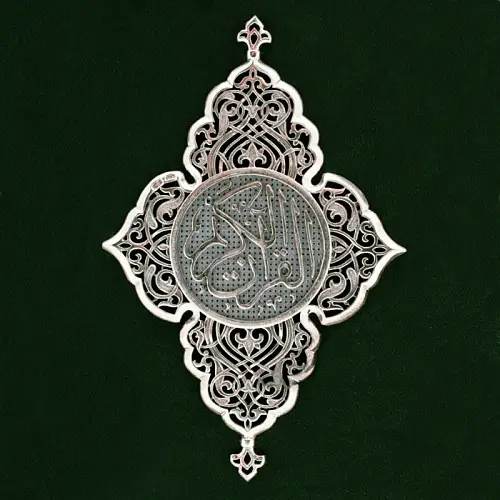 Серебряные орнаменты, украшенные традиционными исламскими мотивами, подчёркивают вечную мудрость Корана. Виньетки в форме полумесяцев, арабской вязи и геометрических композиций переплетаются, напоминая о бесконечности Аллаха и совершенстве Его творения. Драгоценный металл, мерцающий холодным светом, олицетворяет чистоту, благородство и связь земного с небесным.