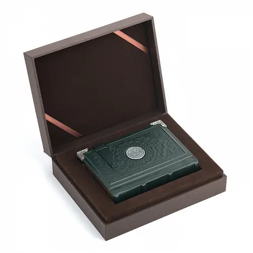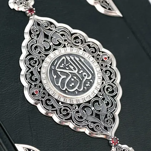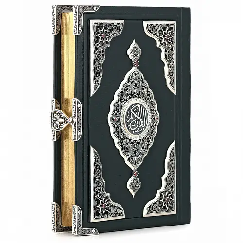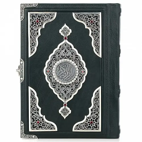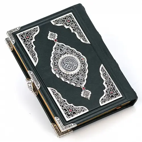 Священный Коран, искусно обрамлённый чистым серебром, — это воплощение духовного величия и изысканного мастерства. Каждая страница Священной Книги, заключённая в изящный оклад с тонкой чеканкой и ажурными узорами, символизирует гармонию божественного слова и человеческого искусства.