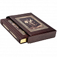 Стильно оформленное подарочное издание в кожаном переплете с трехсторонним золотым обрезом. Кожаный тисненый переплет ручной работы с художественными вставками, металлические уголки. Исполнение в кожаном подарочном футляре с художественными накладками.