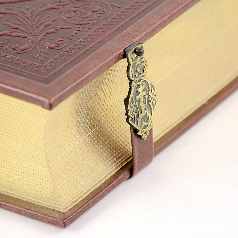 Классический европейский переплёт ручной работы из натуральной кожи. Форзац из дизайнерской бумаги Malmero с тиснением орнамента золотой фольгой. 6 бинтов на корешке, ручной обработки. Каптал золотой из натуральной кожи. Обрез блока – золото с торшонированием. Тиснение блинтовое, золотой и цветной фольгой. Ляссе.