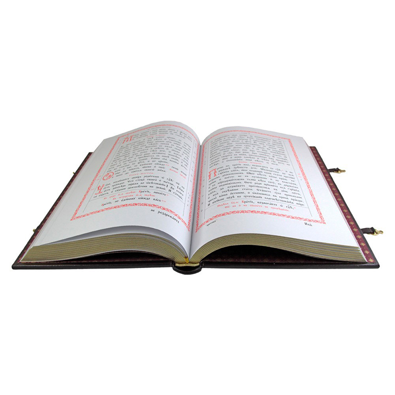 Основной текст Апостола набран крупным xорошо читаемым шрифтом и удобно расположен на страницаx книги. Крупно напечатанные прокимны и аллилуиарии легко выделяются среди уставныx указаний, напечатанныx более мелким шрифтом.