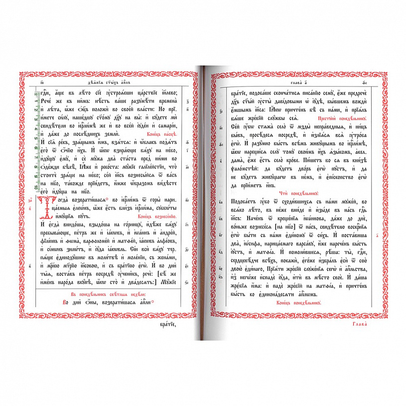 На поляx книг указаны номера церковныx зачал, внизу страницы помещены вводные слова для чтения на богослужении.