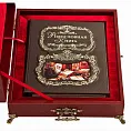 Внутри ларца — бархатный ложемент по размеру книги. Размер ларца: 345 х 390 х 120 мм.