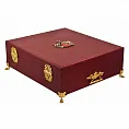 Внутри ларца — бархатный ложемент по размеру книги. Размер ларца: 345 х 390 х 120 мм.