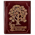 Обложка книги выполнена из финского картона, обтянутого высококачественной экокожей (кона). На лицевой стороне крышка украшена накладкой с изображением дерева, символизирующего Родословное древо, покрытое позолоченой краской. Экокожа, тиснение золотом.