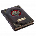 Именной ежедневник в коже переплетен вручную, украшен гербом Российской Федерации - двуглавым орлом.