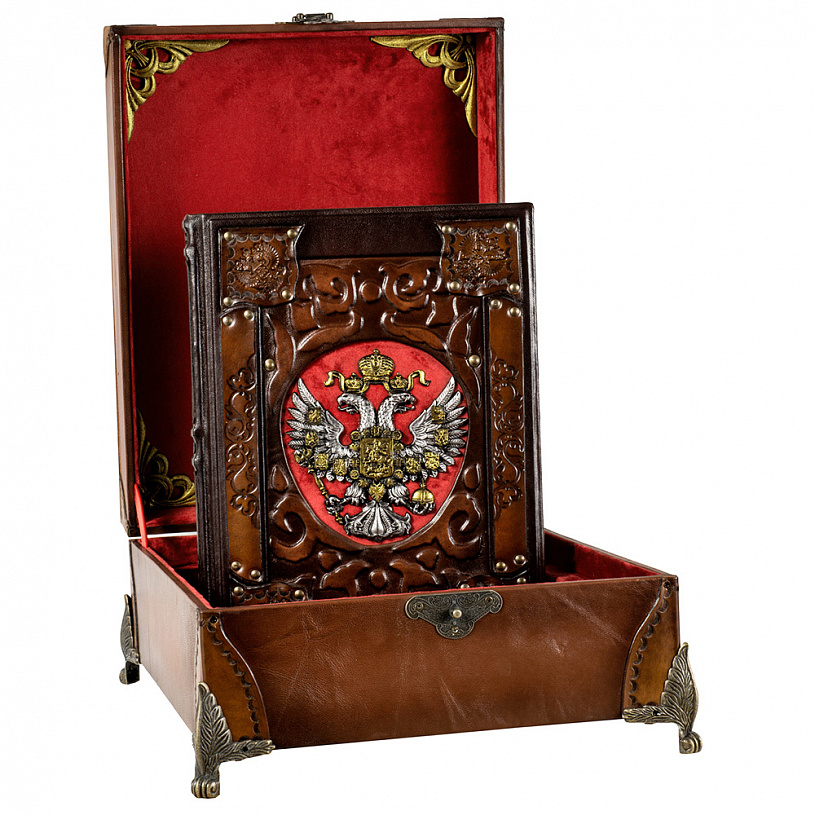 Упаковка: издание помещено в эффектный короб из натуральной кожи.