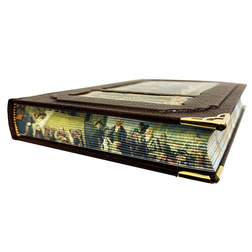 Цельнокожаный переплёт ручной работы, украшен иллюстрированной вставкой из цветного металла. Обложка двухуровневая. Текст книги напечатан на офсетной бумаге и дополнен цветными иллюстрациями. Ляссе из шёлковой ленты. Форзац цельный из дизайнерской бумаги. Цветовое сочетание переплёта и упаковки может отличаться от представленных на фото.