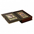 Цельнокожаный переплёт ручной работы, украшен иллюстрированной вставкой из цветного металла. Обложка двухуровневая. Текст книги напечатан на офсетной бумаге и дополнен цветными иллюстрациями. Обрез оформлен в технике "Перо павлина". Ляссе из шёлковой ленты. Форзац цельный из дизайнерской бумаги. Футляр кожаный, вдохновлён дизайном книги.Книга представлена в оригинальном подарочном коробе, перчатки и, по желанию, сертификат (может быть именным) в комплекте. Цветовое сочетание переплёта и упаковки может отличаться от представленных на фото.