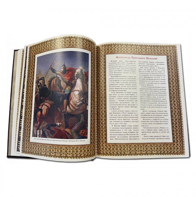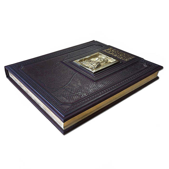 Подарочное издание в кожаном переплете ручной работы из натуральной кожи с трехсторонним золотым обрезом. Книга оформлена накладкой – художественное литье с изображением знаменитого адмирала - Ушакова Федора Федоровича. Мелованная бумага, цветные иллюстрации.