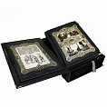 Цельнокожаный переплёт ручной работы, украшен иллюстрированной вставкой из цветного металла. Обложка двухуровневая. Текст книги напечатан на мелованной бумаге и дополнен чёрно-белыми иллюстрациями. Обрез оформлен художественным изображением. Ляссе из шёлковой ленты. Форзац цельный из дизайнерской бумаги. Футляр кожаный, вдохновлён дизайном книги.Книга представлена в оригинальном подарочном коробе, перчатки и, по желанию, сертификат (может быть именным) в комплекте. Цветовое сочетание переплёта и упаковки может отличаться от представленных на фото.