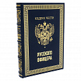 Подарочное издание в цельнокожаном переплете ручной работы. Золотое тиснение, блинт, крашенный в тон переплетного материала обрез. Ляссе. Богато оформленные дюблюрами составные форзацы. Икона выполнена методом гальванопластики с серебрением поверхности, в сочетании с деревянной основой. В Российской империи звание "русский офицер" было не просто обозначением профессиональной либо социальной принадлежности. Звание "офицер" означало принадлежность к особой касте людей, для которых честь и достоинство были дороже жизни. За честь сражались, за нее же и умирали.