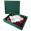 Цельнокожаный переплет ручной работы. Прекрасное сочетание различных видов тиснения (золотого, цветного и блинтового), что придает определенный эстетический вид. Крашеный обрез. Ляссе. Книга представлена в оригинальном подарочном коробе: мешочек, перчатки в комплекте.