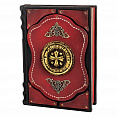 овчина, литье, тиснение ручной работы, черная и красная кожа, выжигание по коже на корешке.