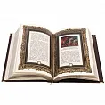 Дизайн прекрасно сочетает в себе золотое и бинтовое тиснение, художественную металлическую вставку, соответствующую тематике издания, а также крашенный в тон переплетного материала обрез. Цельнокожаный переплет ручной работы Высококачественная бумага, красочные иллюстрации, ляссе.