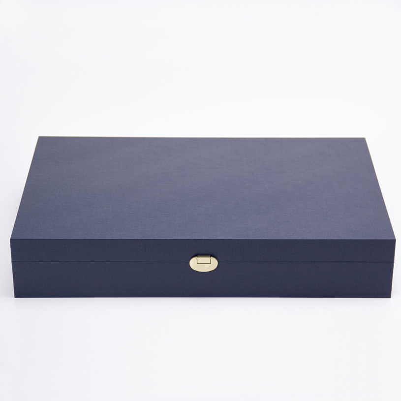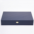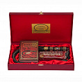 Поставляется в подарочной деревянной упаковке, обтянутой бумвинилом синего или бордового цвета. Размер - 40 х 22 х 7 см. Указывайте при заказе.