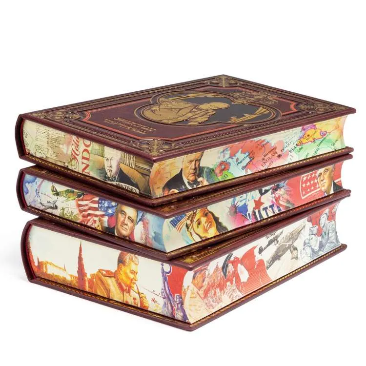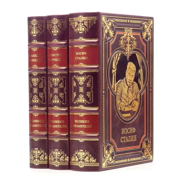 Подарочный трехтомник в коже "Сталин, Рузвельт,Черчилль"