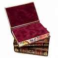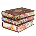 Кожаный переплет ручной работы в стиле "французский переплет". Золотое, блинтовое тиснение. На корешке - бинты. Трехсторонний обрез книги ошкурен и окрашен вручную с прокаткой узора. Бумага офсет. Книги представлены в подарочном футляре.