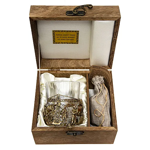 Бокал для виски "Строители" с камнями в деревянном футляре