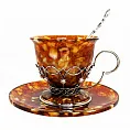 Высота чашки - 80 мм., диаметр блюдца - 145 мм., длина ложечки - 140 мм., объем - 180 мл.
