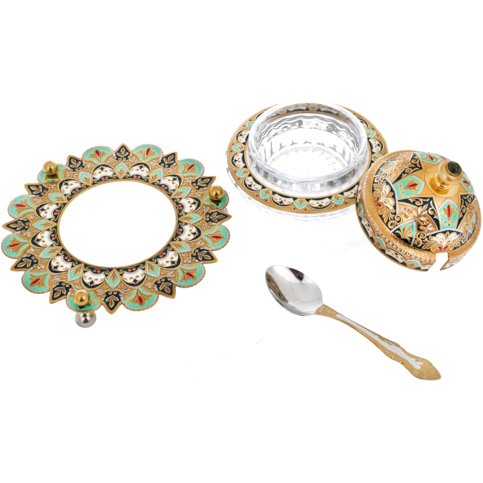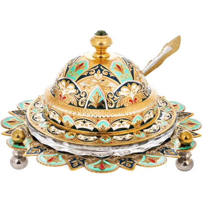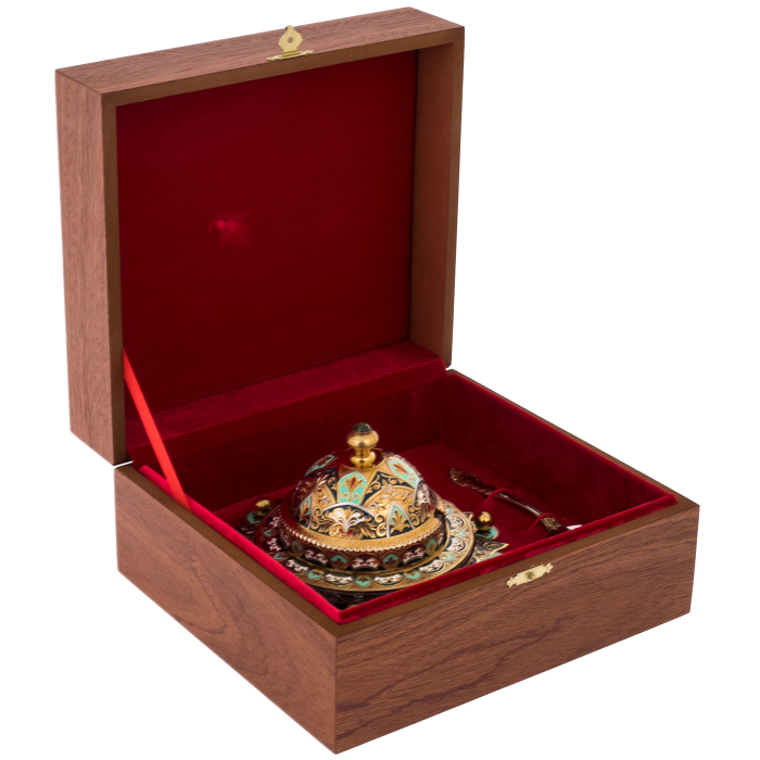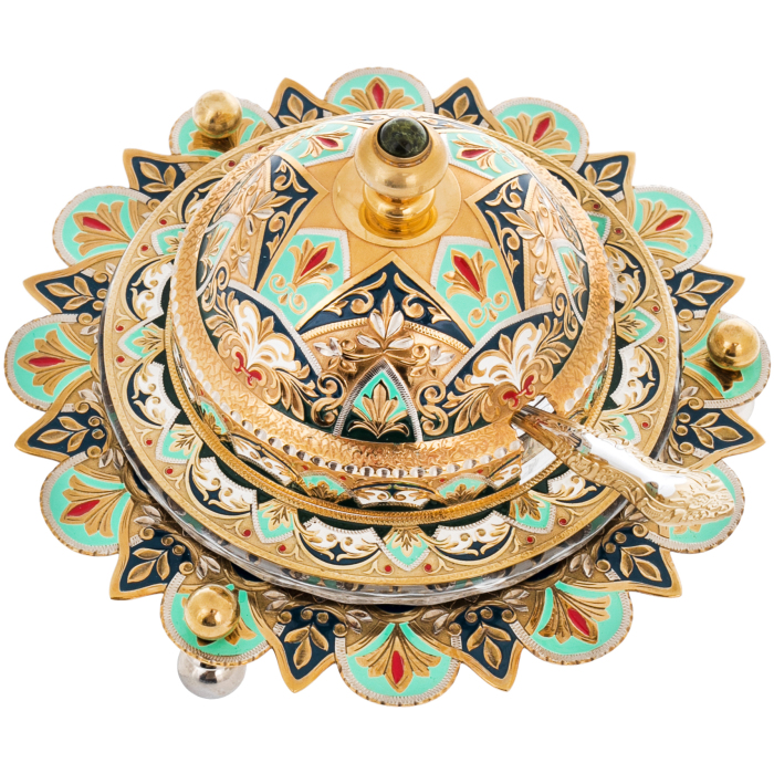 Изделие выполнено в технике Златоустовской гравюры на металле. Токарные работы, рисовка кистью, гравировка иглой по лаку, травление, гравировка резцом, полировка, никелирование, золочение.