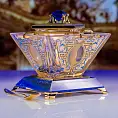 Подставка выполнена из яркого синего минерала лазурита. Этот материал добавляет изделию особую изысканность и привлекательность. Желтый металл и синий цвет лазурита прекрасно сочетаются друг с другом, создавая дорогой и эффектный общий вид.