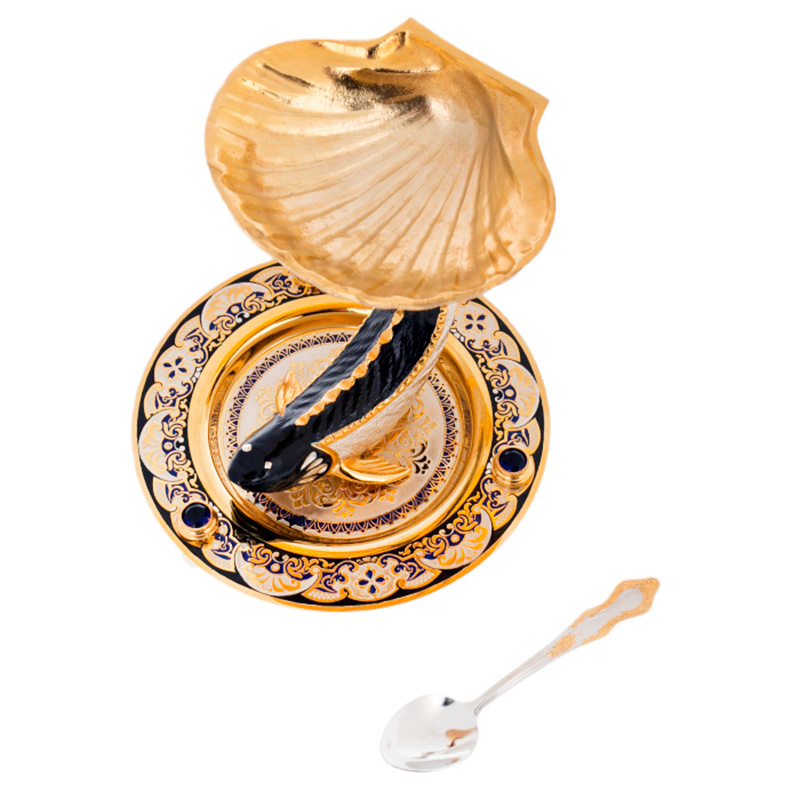 Изделие выполнено в технике Златоустовской гравюры на металле. Токарные работы, рисовка кистью, гравировка иглой по лаку, травление, гравировка резцом, полировка, никелирование, золочение.