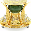 Изделие выполнено в технике Златоустовской гравюры на металле. Токарные работы, рисовка кистью, гравировка иглой по лаку, травление, гравировка резцом, полировка, никелирование, золочение.