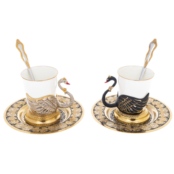 Набор для кофе из двух чашек "Лебеди" станет прекрасным подарком для ценителей изысканной посуды и роскошного сервирования стола. Он добавит изысканности и элегантности в вашу коллекцию посуды и подчеркнет ваш безупречный вкус.
