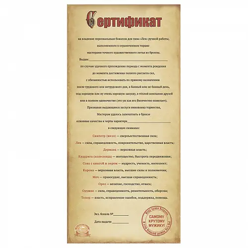 Размер бокала для пива "Рак": высота - 23 см, ширина - 14 см. Объем 0,5 литра