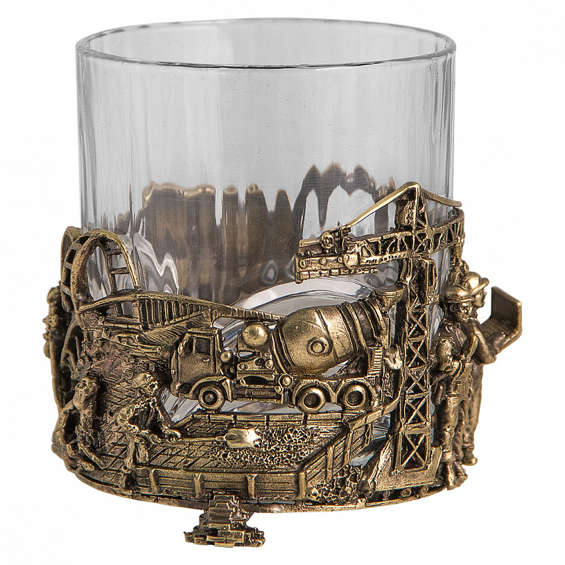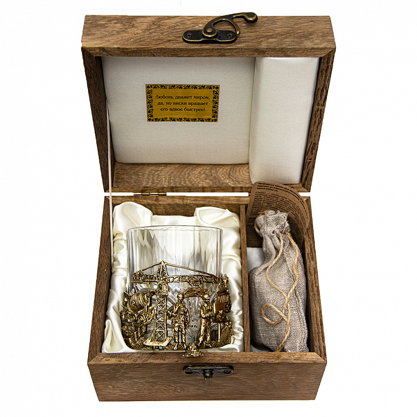 Бокал для виски "Строители" с камнями в деревянном футляре