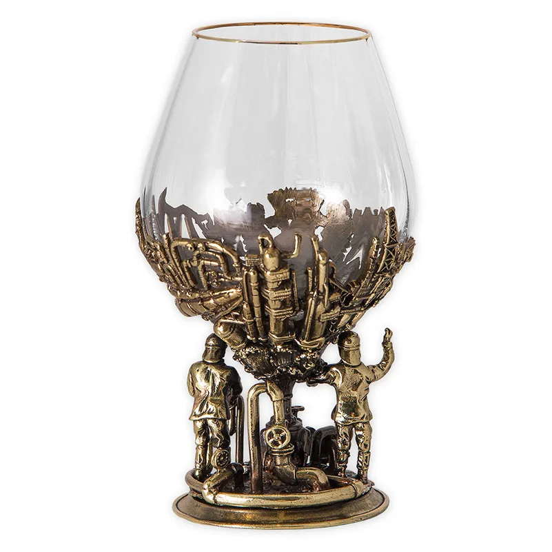 Бокал для коньяка "Газ и Нефть" в деревяном футляре