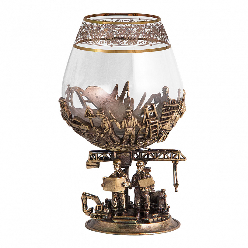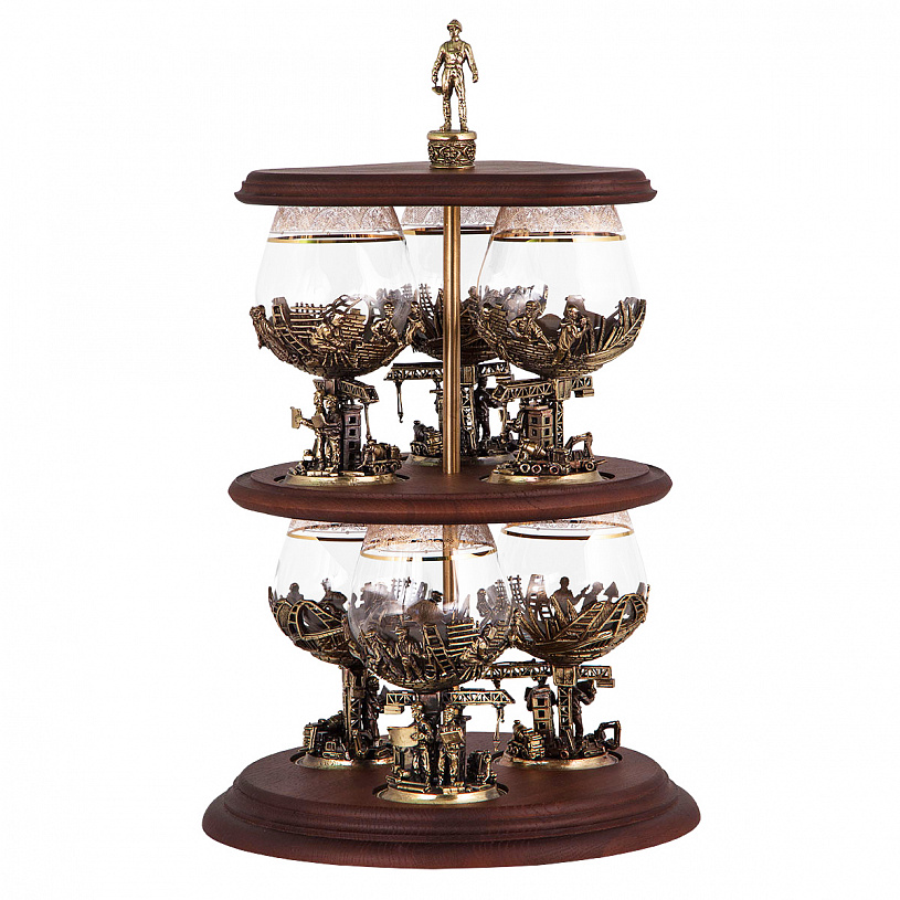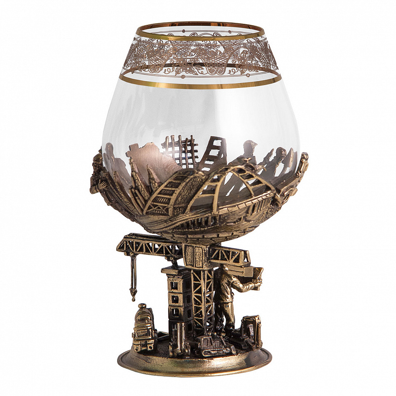 Сложное объемное литье из бронзы, в сочетании с декорированным богемским стеклом, делает эти бокалы не только презентабельными,