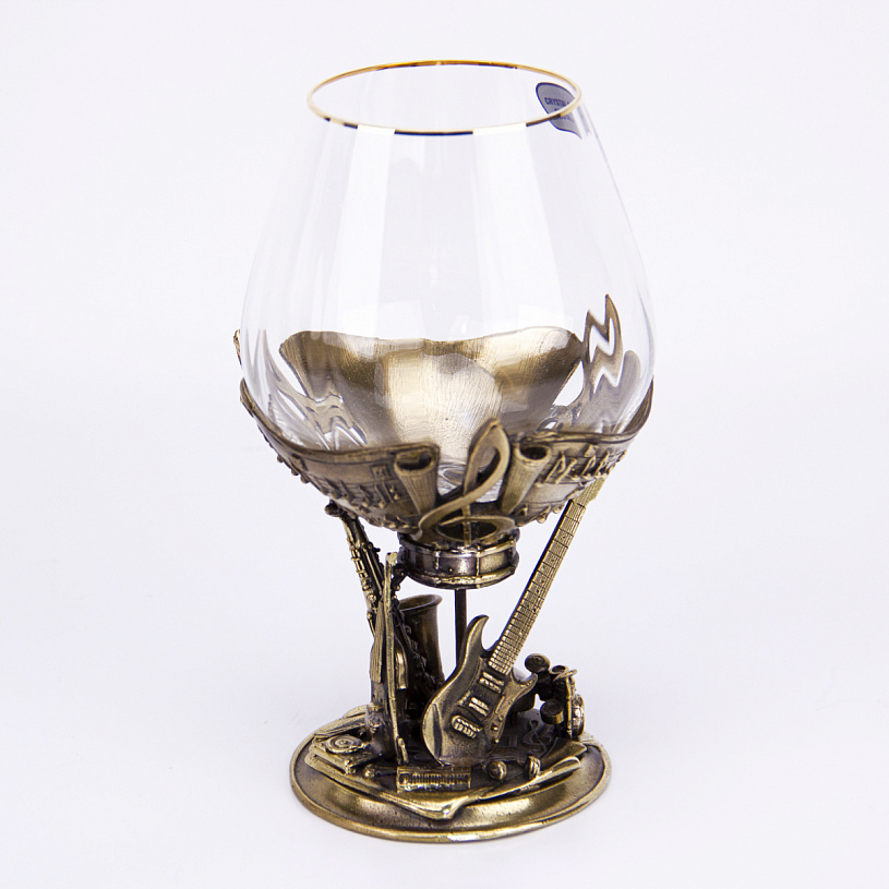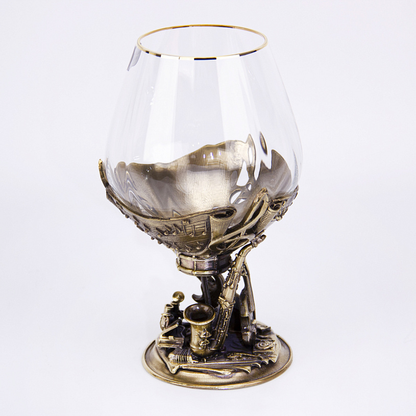 Сложное объемное литье из бронзы, в сочетании с декорированным богемским стеклом, делает эти бокалы не только презентабельными,