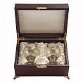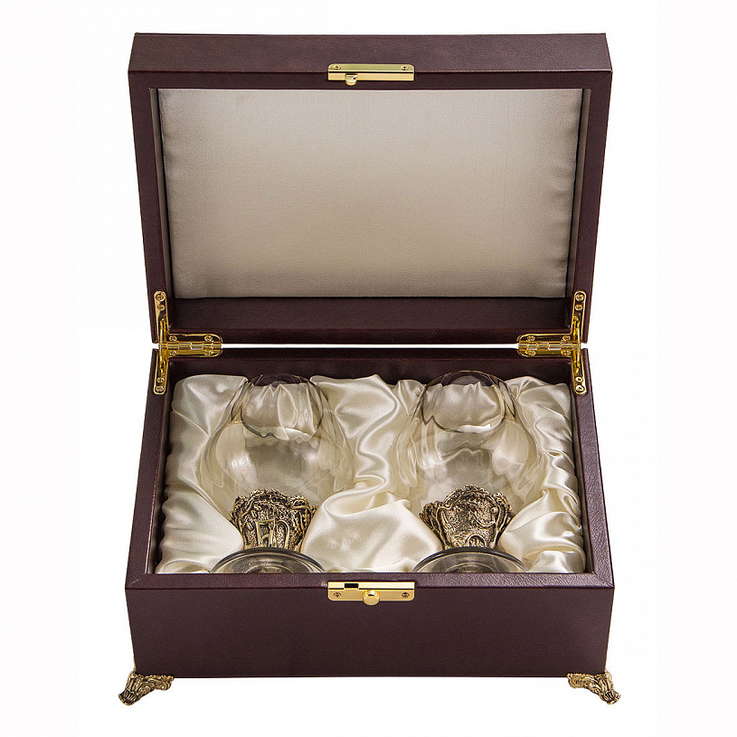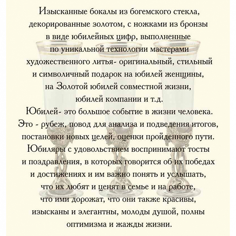 Сложное объемное литье из бронзы, в сочетании с декорированным богемским стеклом, делает эти бокалы не только презентабельными,